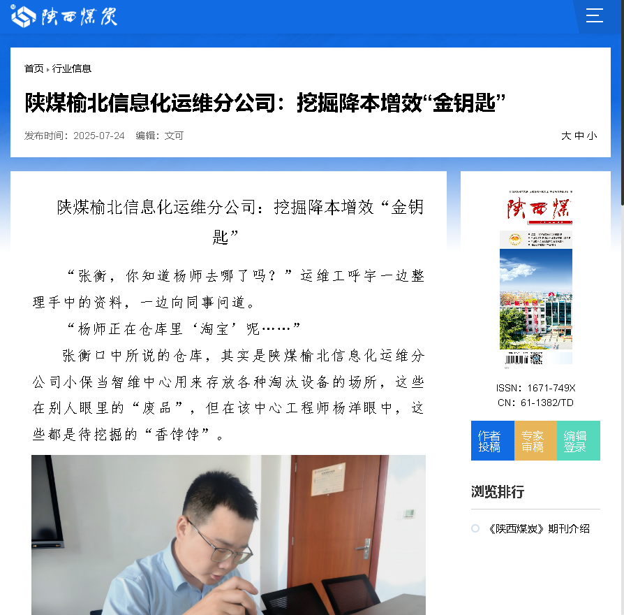 陜西煤炭丨榆北信息化運(yùn)維分公司: 挖掘降本增效“金鑰匙”