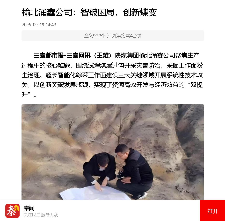 三秦都市報(bào)-三秦網(wǎng)訊丨榆北涌鑫公司:智破困局,創(chuàng)新蝶變