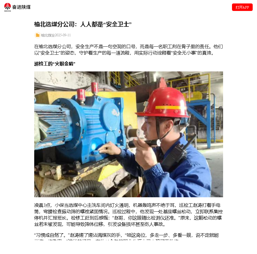 奮進(jìn)陜煤丨榆北選煤分公司: 人人都是“安全衛(wèi)士”