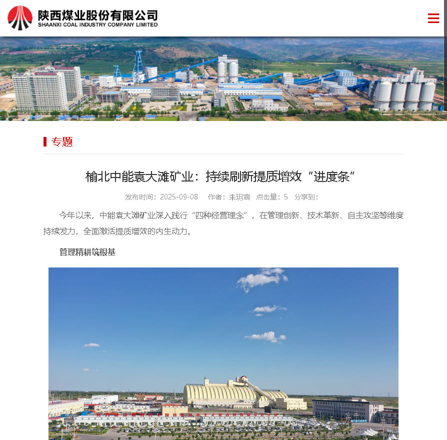 陜西煤業(yè)官網(wǎng)丨榆北中能袁大灘礦業(yè): 持續(xù)刷新提質(zhì)增效“進(jìn)度條”