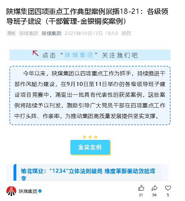 陜煤集團(tuán)微信丨榆北煤業(yè):“1234”立體法則破局 維度革新驅(qū)動(dòng)效能蝶變
