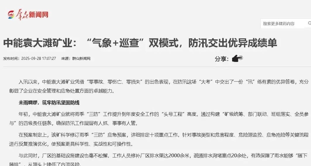 群眾新聞網(wǎng)丨榆北中能袁大灘礦業(yè): “氣象+巡查”雙模式,防汛交出優(yōu)異成績(jī)單