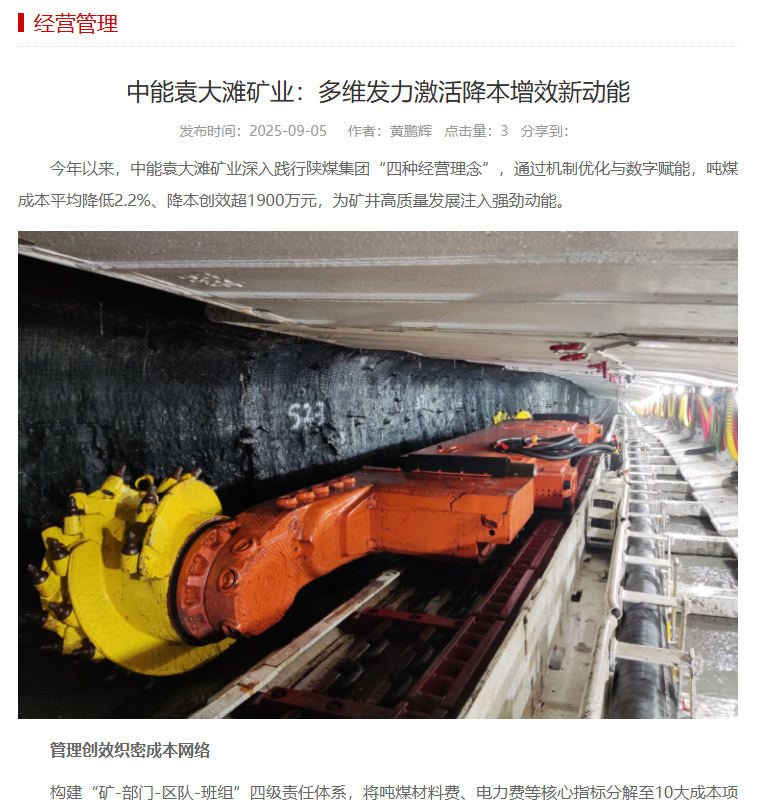 陜西煤業(yè)官網(wǎng)丨中能袁大灘礦業(yè):多維發(fā)力激活降本增效新動(dòng)能