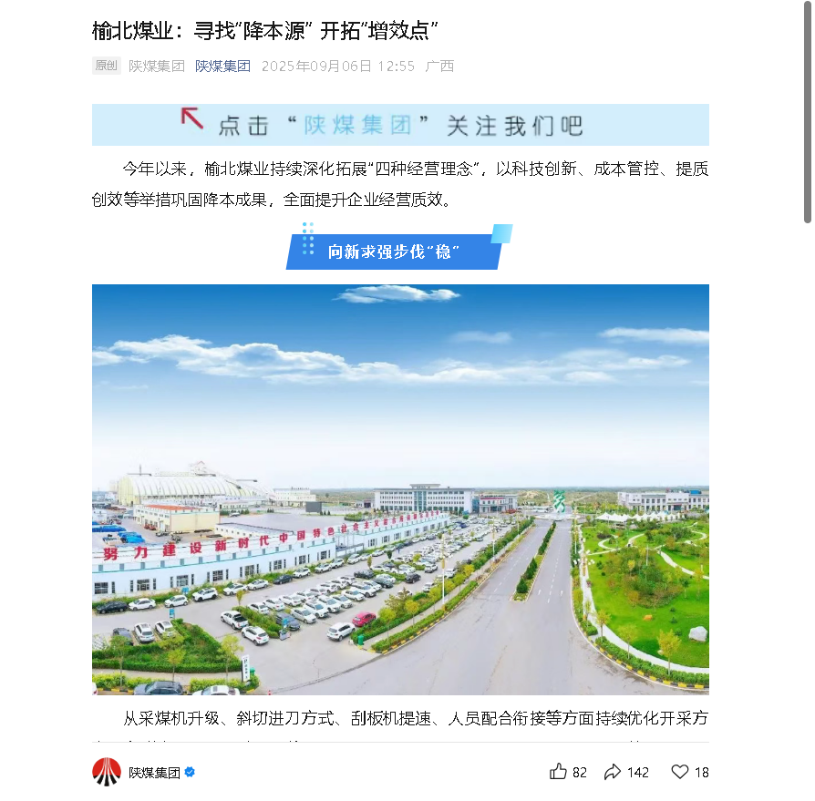 陜煤集團(tuán)微信丨榆北煤業(yè): 尋找“降本源” 開(kāi)拓“增效點(diǎn)”