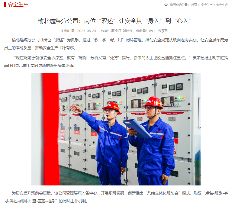 陜西煤業(yè)官網(wǎng)丨榆北選煤分公司:崗位“雙述” 讓安全從身入到心入
