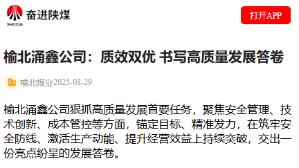 奮進(jìn)陜煤丨榆北涌鑫公司: 質(zhì)效雙優(yōu) 書(shū)寫(xiě)高質(zhì)量發(fā)展答卷