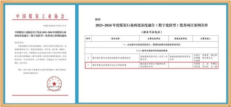 信息化運(yùn)維分公司獲評(píng)煤炭行業(yè)兩化深度融合優(yōu)秀項(xiàng)目案例